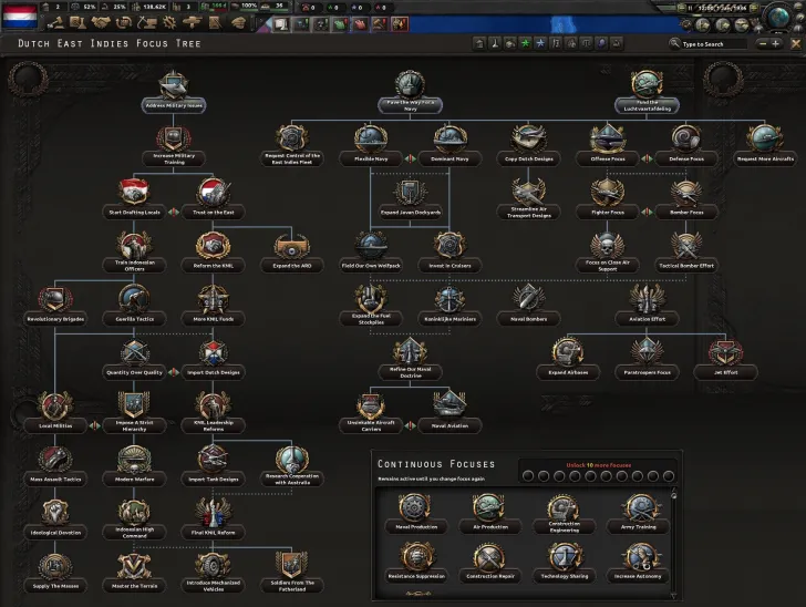 2. Push forward and (with blessing of the Indonesians) put the Stuwgroep in the Raad van Indie, ensuing that the idea of an Indies dominion within the Dutch Commonwealth would be realized sooner, and alongside that, reform both the East Indies government and military, while dealing with both rigid militarists and unbowed European corporatists, before Japan comes down knocking? (Together for Victory required)