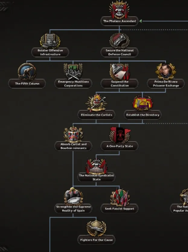 Step into an alternate history where Spain rises from the ashes of civil war not as a fractured land, but as a reborn empire, disciplined, technocratic, and relentless. This mod expands the Spanish National Focus Tree with dozens of new branches, events, and decisions, offering a deeper and more immersive path for Nationalist Spain.