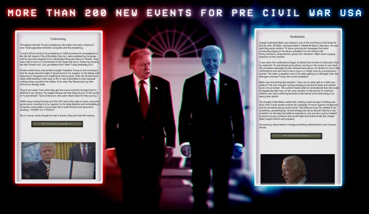 The United States is falling apart under the weight of its contradictions. More than 40 new events plunge players into the heart of the American political hell, where pandemic chaos, economic crisis and social unrest collide with the ego, ideology and desperation of leaders. Travel through a country that is being torn apart.