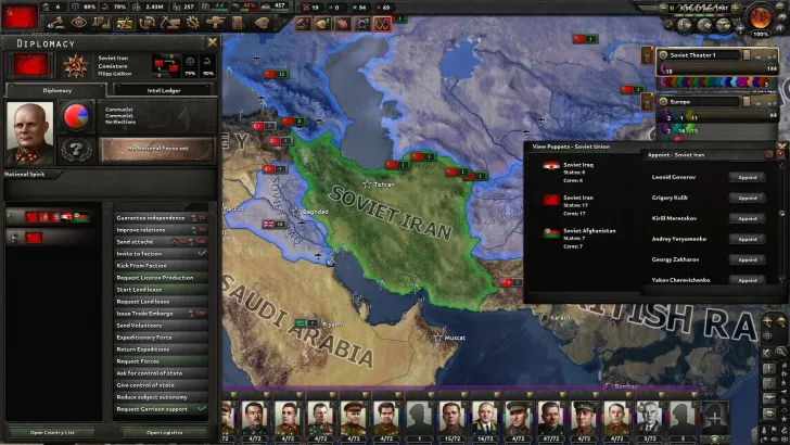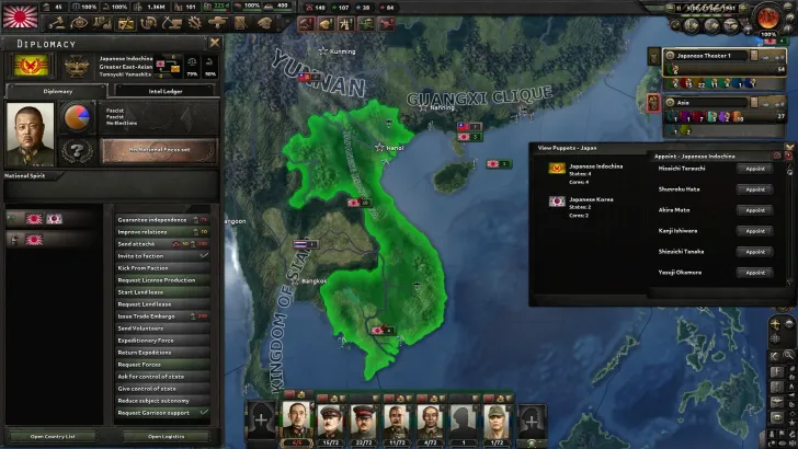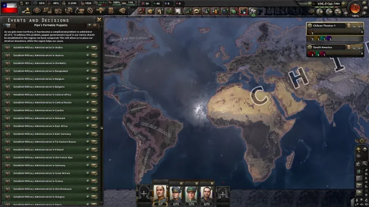 In the base game, the only country capable of creating puppets through decisions is Germany, with its Reichskommissariats. This mod attempts to address this issue by adding new formable puppets that countries can create by occupying certain territories. These new puppets have their own level of autonomy called "Military Occupation," which mirrors the effects of the base game's "Integrated Puppet."