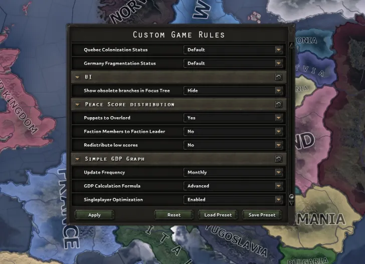 Have you ever wondered how your country's economy has grown over the course of a playthrough? Look no further, as this mod adds a GDP graph to your construction window. With dynamic axis scaling, you can know exactly how your economy has grown.