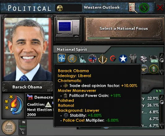 This graphical submod for Millennium Dawn delivers an unfiltered visual overhaul of the United States to reflect a more today's American politics with enough leaders for you to pick from. Offering you a more future proof playthough.