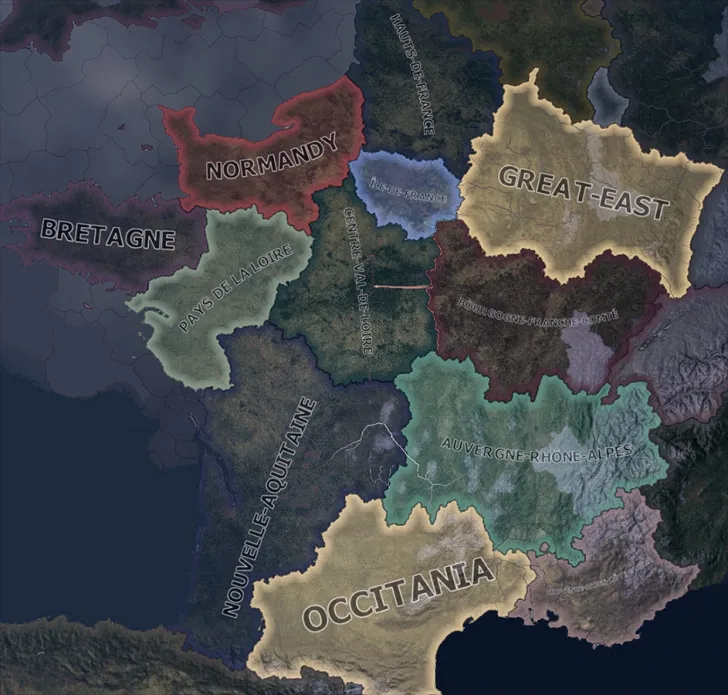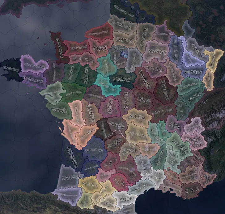 Shadows of France is a mod taking place on a full scale map of France, and its neighbouring countries. The whole map has been made using accurate data taken from different sources such as NASA’s Blue Marble satellite pictures, QGIS Natural Earth’s data and vector files taken from the French ministry of the interior.