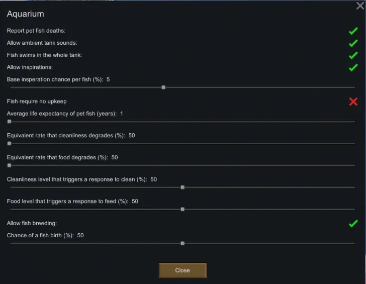 - Added an option for fish not aging
