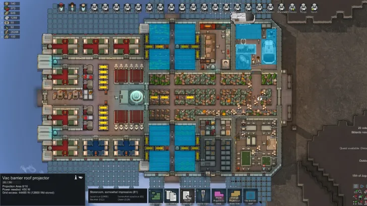 A device that can power vac barrier on the vac roof, which allow shuttles, drop pods and light through. Powered vac roof will prevent oxygen leaks, weather effects and temperature change. Size and Offset of projection barrier can be adjusted with up to 16 tiles total. When projector not powered vac roof act as if there is no roof.