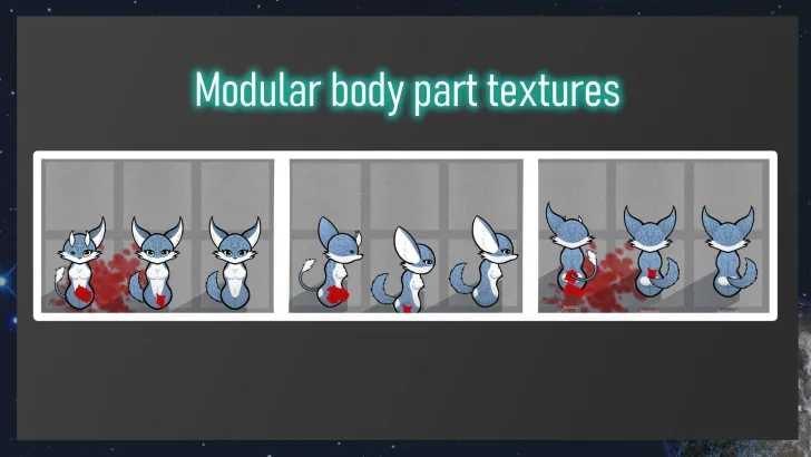 -Modular body part textures. Destruction of eyes/nose/ears/tail will be visible