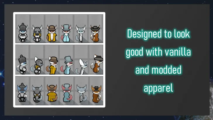 Not compatible with mods that overhaul pawn appearence. Facial stuff, etc.