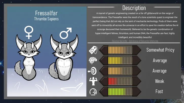 A mysterious genetical experiment from glitterworld. Was it either a failure or success? Sadly, people behind this won't be able to know. There are rumors that at some worlds you may encounter a race of cute fluffy humanoids that look similar to Thrumbo. Who knows what secrets are hidden in them?