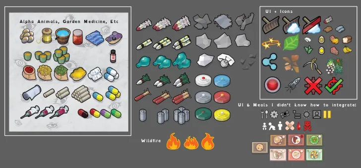 Hand-drawn retextures for items, buildings, floors, UI, etc in Vanilla and: