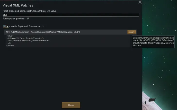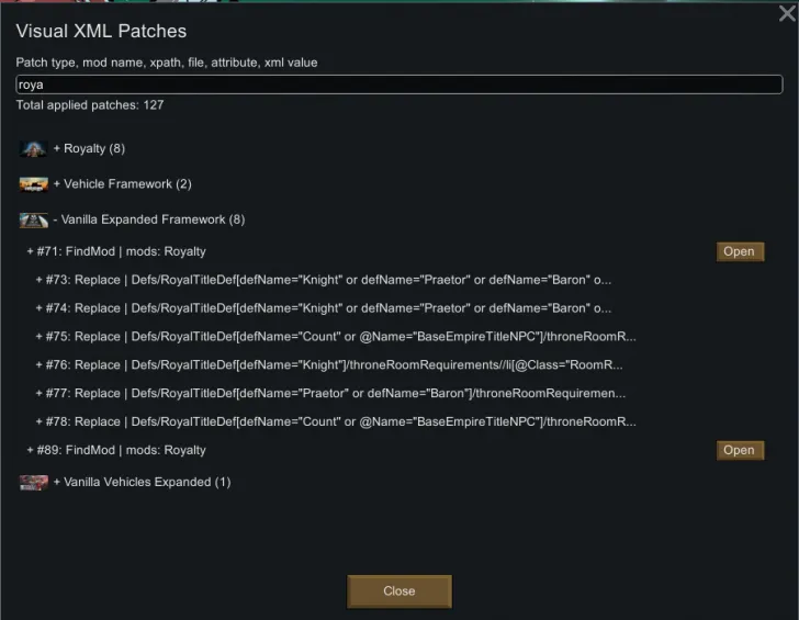 This mod will show the XML patches loaded in the game to help in finding the cause of issues.