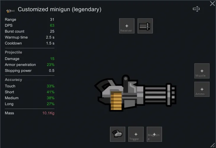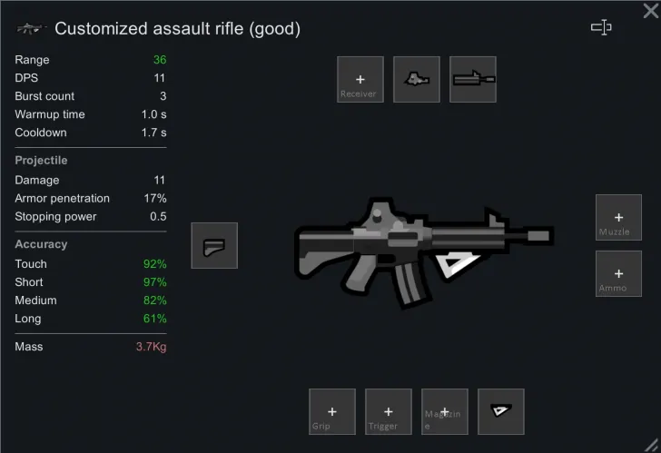 Every module you install is visually represented on the weapon's sprite. What you see is what you get. A long barrel makes the weapon look longer, and a vertical grip appears right where it should be. It's intuitive, just as it should be.